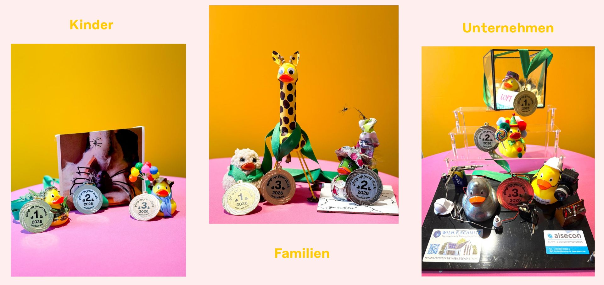Eine unabhängige Jury hatte die schöne (und wirklich nicht einfache!) Aufgabe, aus all den großartigen Enten insgesamt neun Gewinner:innen auszuwählen: